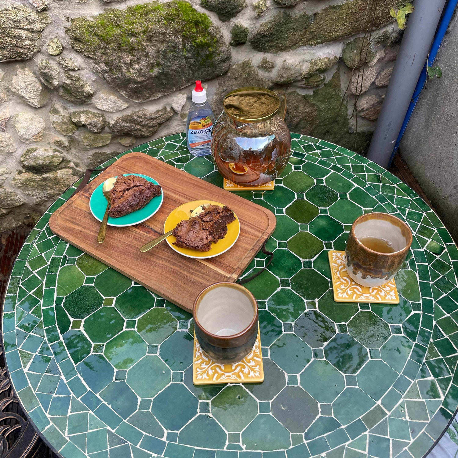 CUSTOM MOSAIC TABLE, Yellow And Green Tamegroute Tiles Round Table