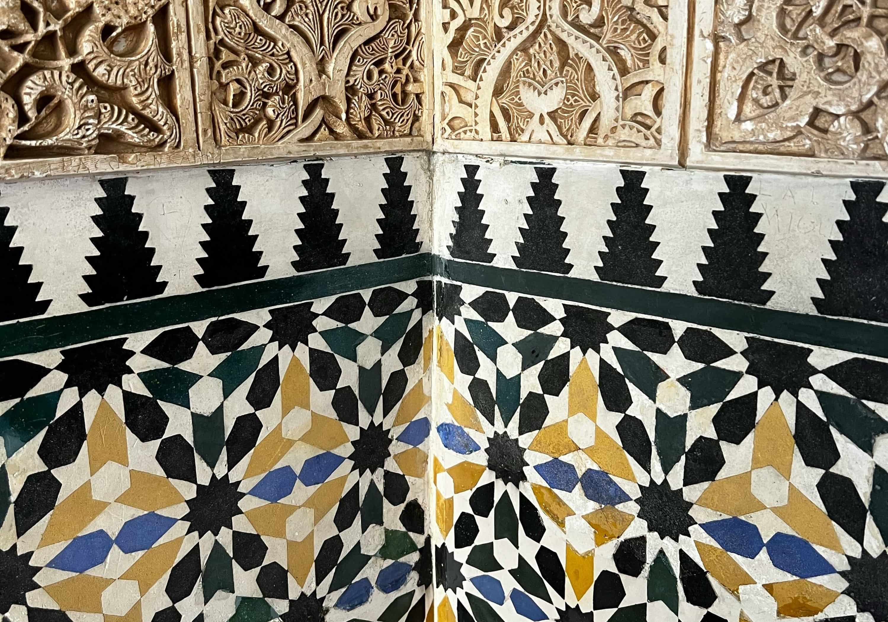 Moroccan zellige is a traditional mosaic tilework made from clay and crafted through a meticulous artisanal process. It begins with natural clay, usually sourced from Fez, which is soaked in water, kneaded by hand or foot, and shaped into flat tiles. These are sun-dried, then fired in kilns to harden.