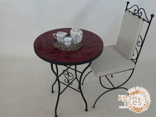 Hajar - Red White Mosaic Table, Handmade Moroccan Zellige Garden Table