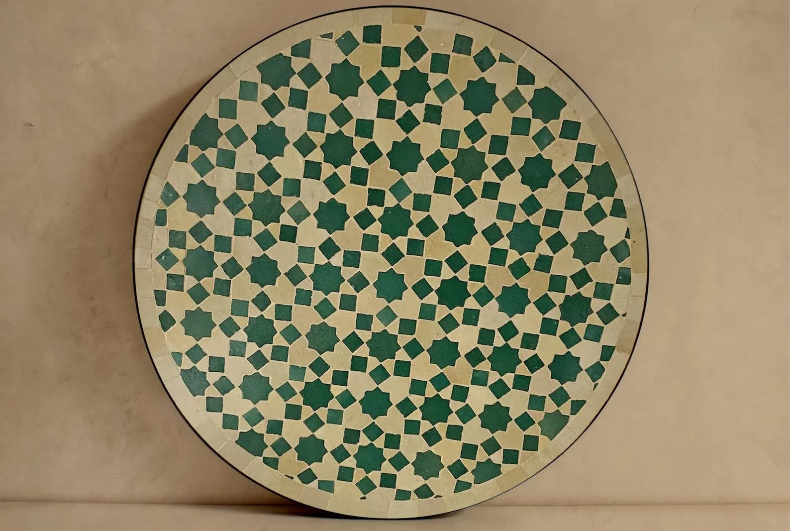 Ifri - Green Mosaic Table, Round Handmade Moroccan Zellige Patio Table