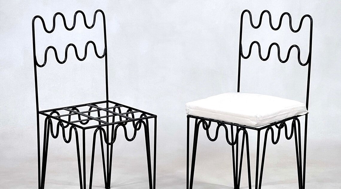 Aderfi - Wave Wrought Iron Chairs Set, Handmade Moroccan Seating with Cushions
